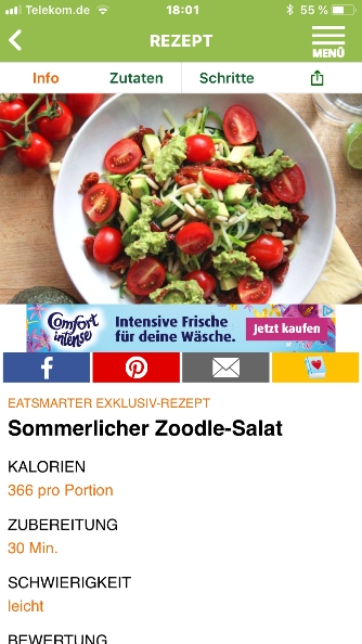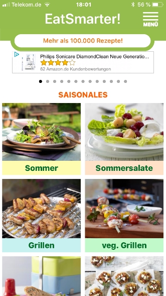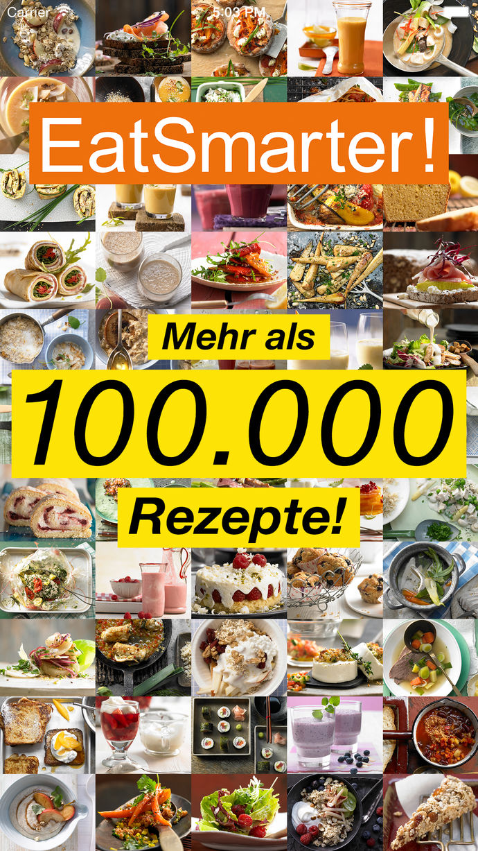 Die kostenlose „EatSmarter!“- App gibt Dir vollen Zugriff auf die über 100.000 gesunden Rezepte von eatsmarter.de. Ob Low Carb, Superfood, vegetarisch oder vegan – mit der App „EatSmarter!“ findest Du moderne, gesunde, einfache und schnelle Rezepte mit Gelinggarantie. Gibts für Android und Apple.