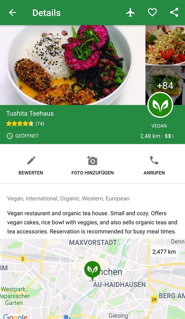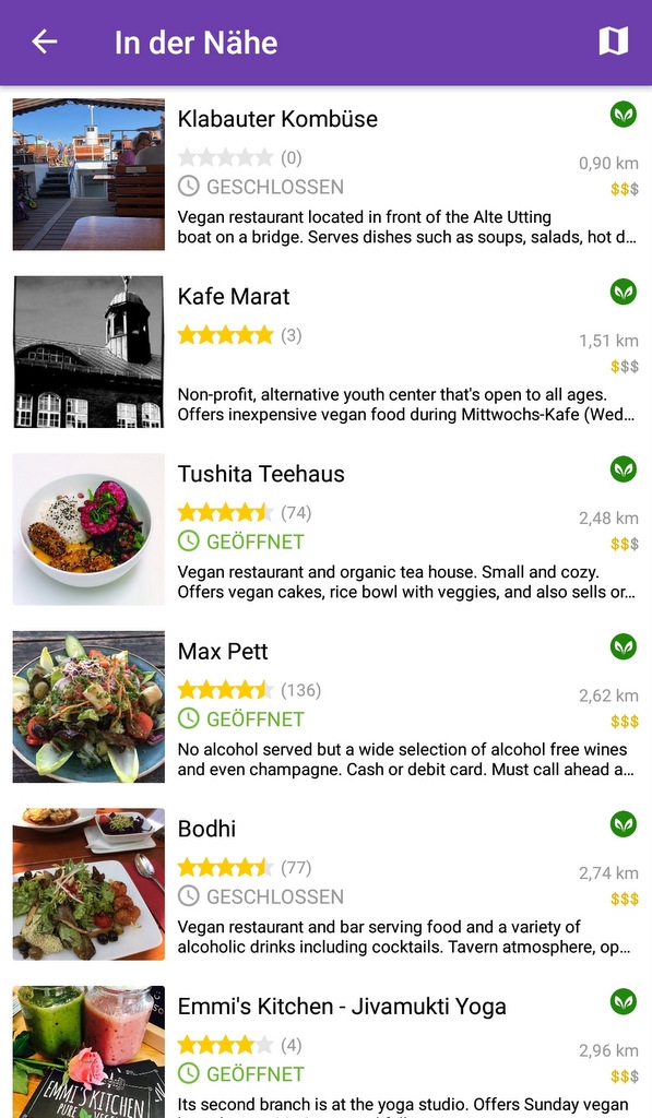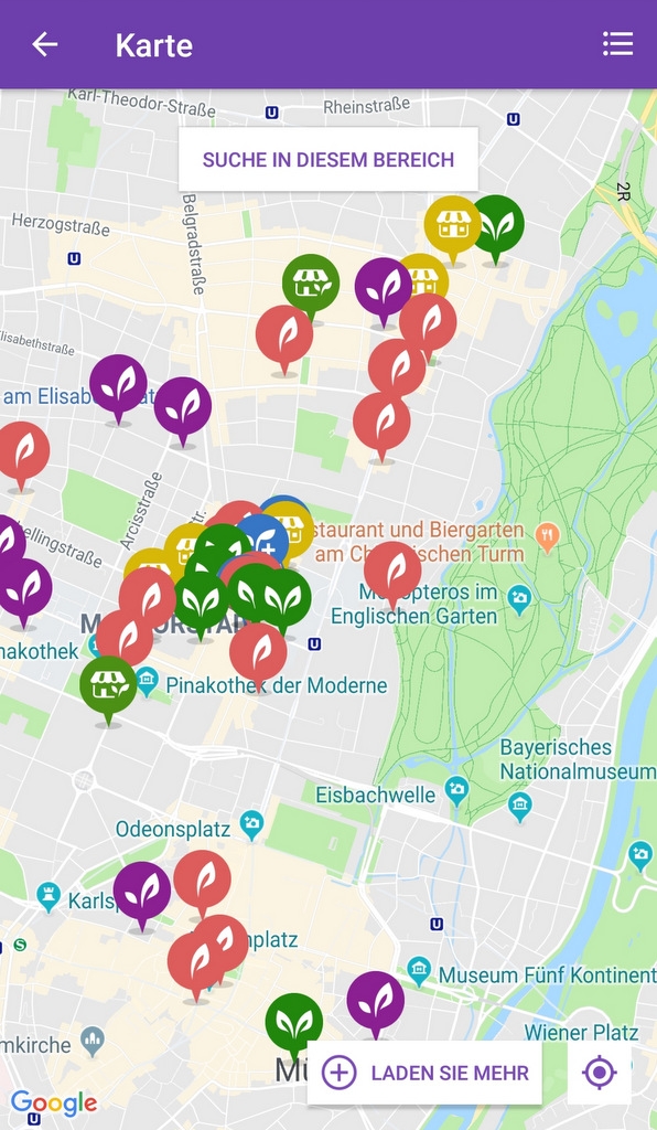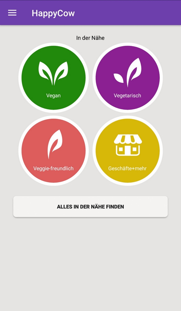 „Happy Cow“ ist eine gemeinschaftsbetriebene App, die Dir hilft, Dich in (neuen) Städten bei der Suche nach vegetarisch- und vegan-freundlichen Restaurants und Einkaufsmöglichkeiten zu orientieren. Gibts für Android und Apple.