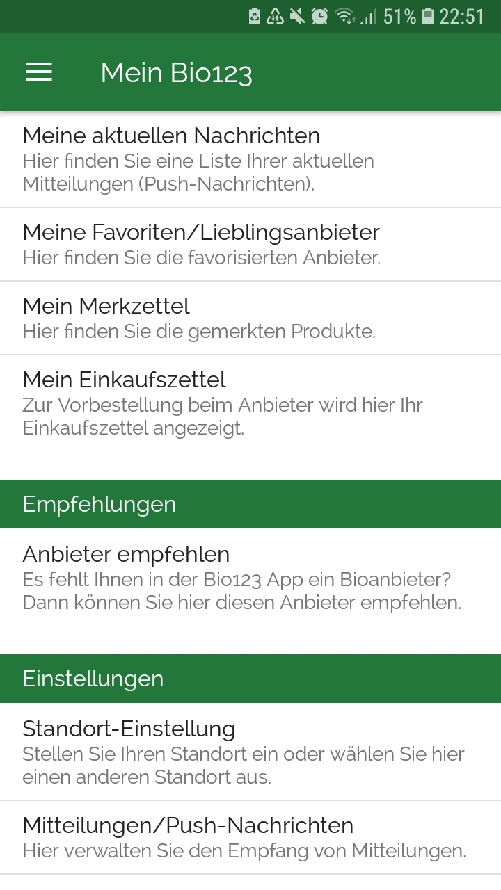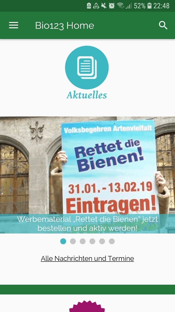 Wenn Dir eine umweltschonende und nachhaltige Lebensweise wichtig ist, könnte die App „Bio 123“ ein guter Kompass für Dich sein. Die kostenlose App liefert Dir eine Übersicht mit Bio-Anbieterinnen und Anbietern aus verschiedenen Bereichen in Deiner Nähe. Außerdem hält sie Dich mit aktuellen Infos aus der Bio-Branche up to date. Gibts für Android und Apple.
