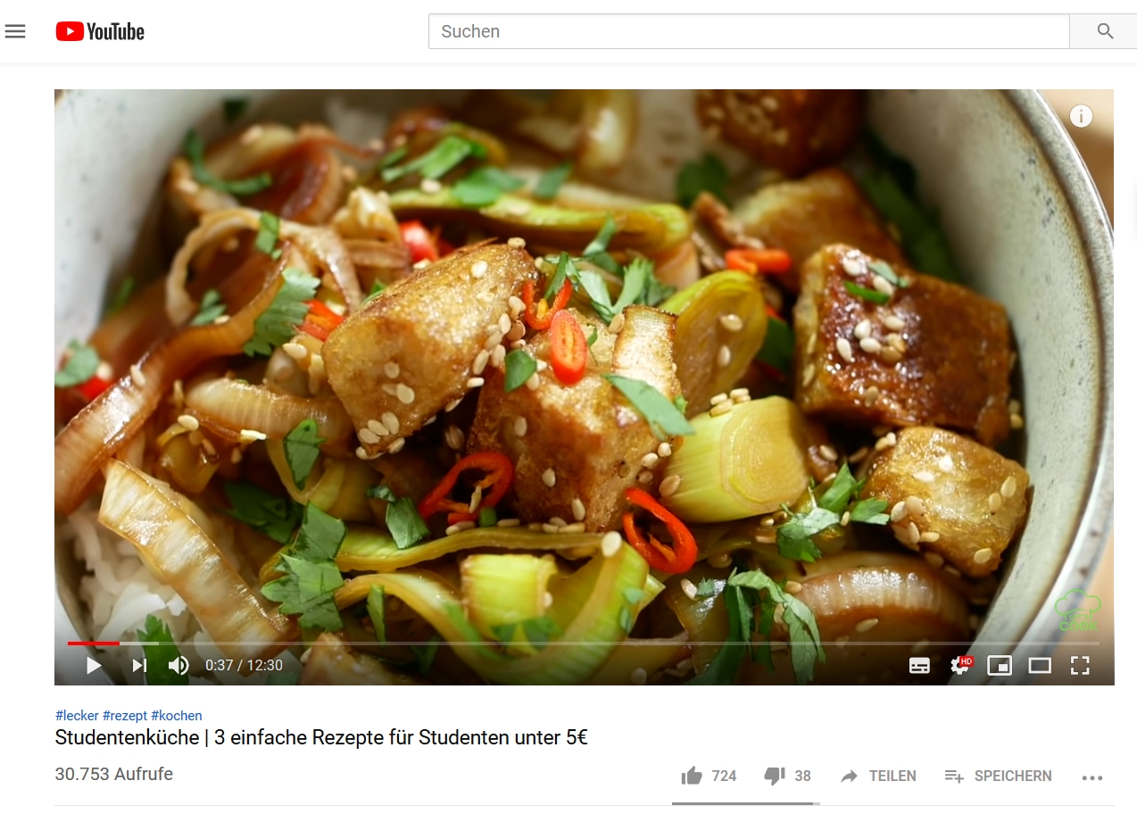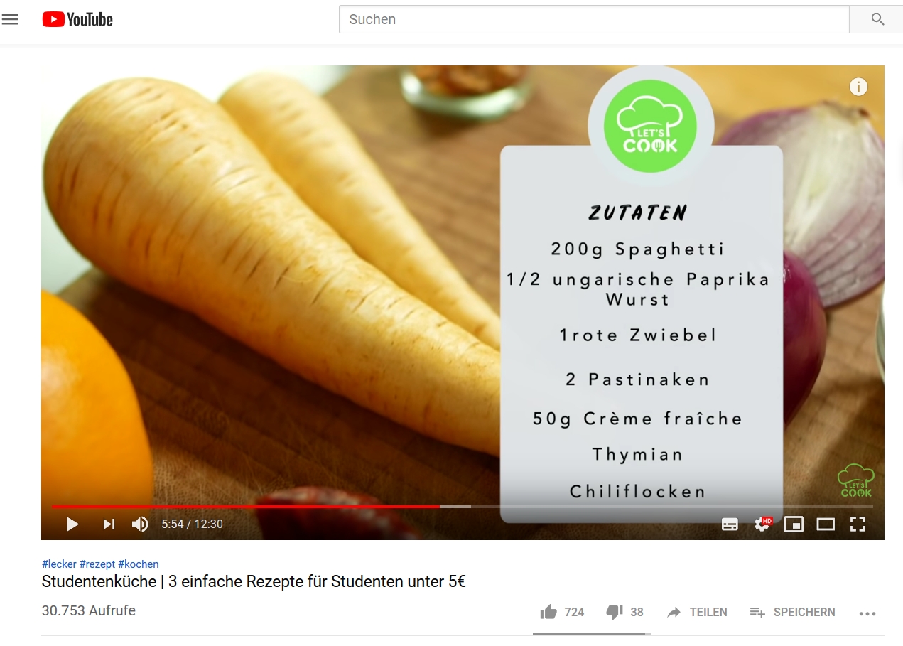 Der Channel "Let's Cook - Einfache Rezepte" auf YouTube stellt in diesem Video drei Rezepte für Studierende vor, die zum einen schnell zubereitet und zum anderen günstig sind. Alle Zutaten werden genau vorgestellt und die Zubereitungsschritte anschaulich und einfach erklärt, sodass man Lust bekommt, die Rezepte nachzukochen.