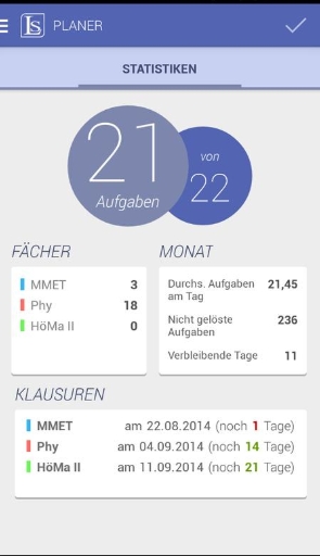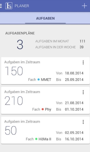 Die App „Lernstage Planer“ hilft dem:der Nutzer:in dabei, einen strukturierten Lernplan zu erstellen, die Zeit besser einzuteilen und im Blick zu behalten und sich somit gut für Klausuren, die in einem sehr engen Zeitfenster stattfinden, vorzubereiten. Die selbstgesetzten Ziele und Termine können überprüft werden und es wird sogar an eingetragene Deadlines erinnert.