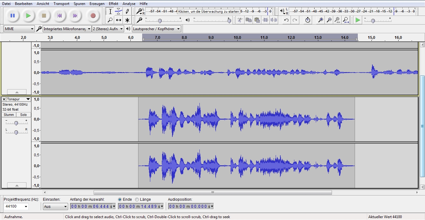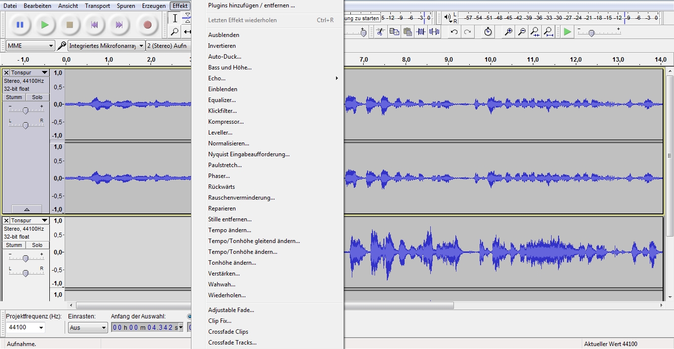 „Audacity“ ist einer der umfangreichsten unter den kostenlosen Audioeditors. Hier kannst Du Audiospuren auf mehreren Tonspuren mischen, schneiden und mit Effekten belegen.