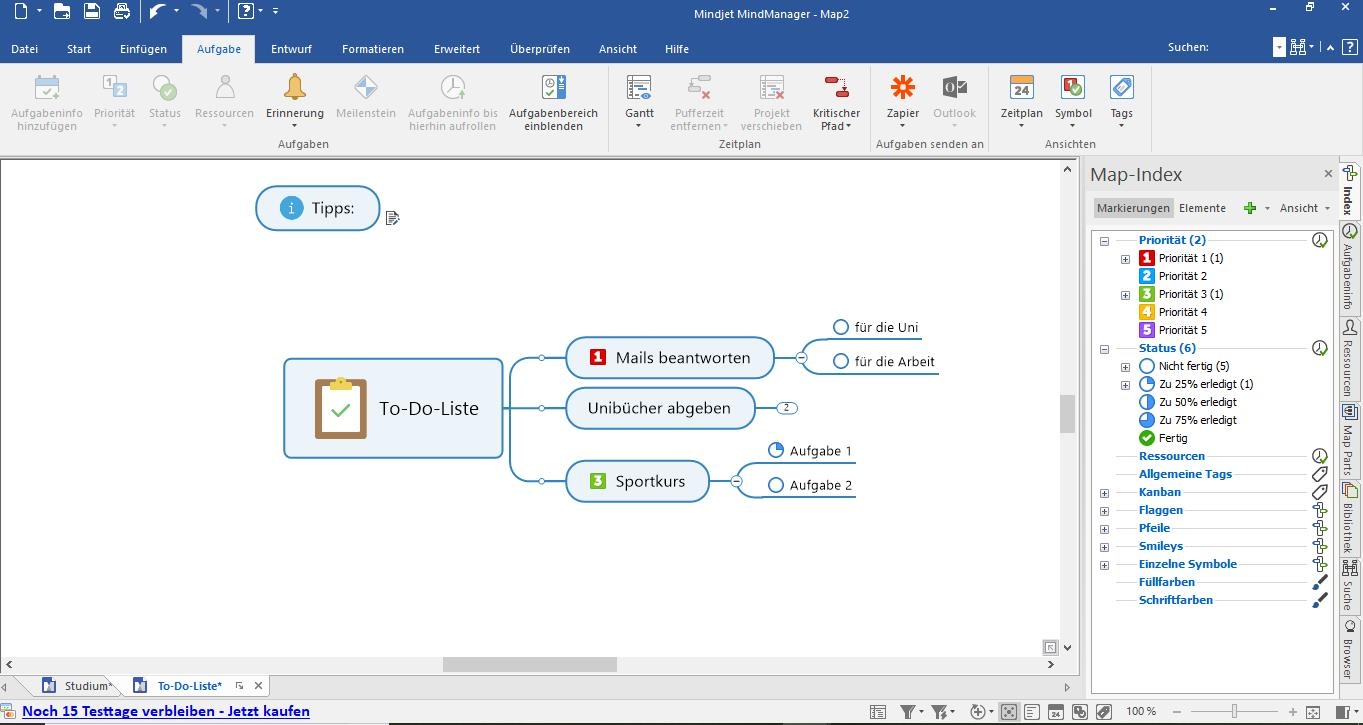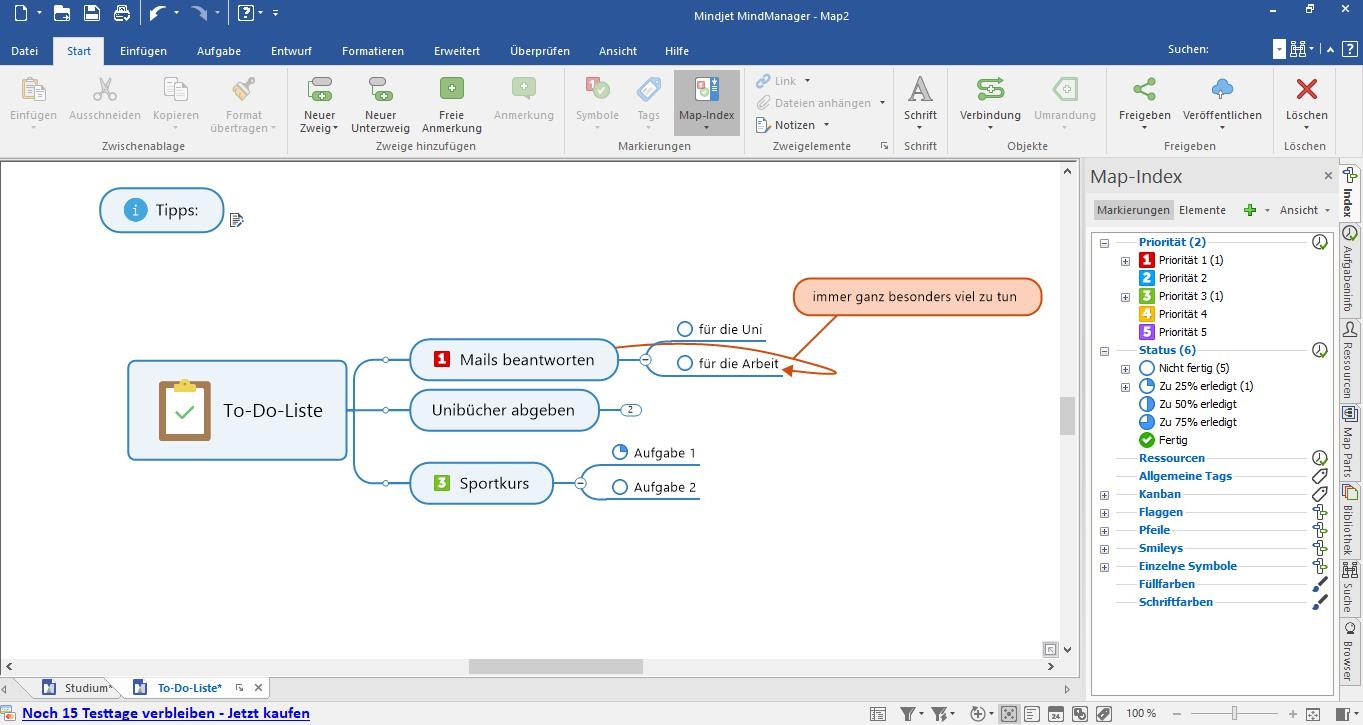 Du magst es Deinen Alltag und Inhalte für Dein Studium mit Mindmaps zu gestalten? – Dann ist „Mindjet“ genau das Richtige für Dich. Die Software ist für Mac und Windows verfügbar. 30 Tage lang kannst Du alle Funktionen sogar kostenfrei testen. Per Mail bekommst Du eine kostenlose Einführung für und von „Mindjet“.
