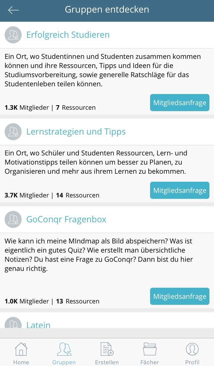 Warum nur Urlaubsfotos teilen, wenn dasselbe auch mit Lernmaterialien geht? Die App „GoConqr“ ermöglicht als soziale Lernplattform das Erstellen, Teilen und Kommentieren von Lernmaterialien. Du kannst Dich in Gruppen zu Deinem Studienfach vernetzen, Flussdiagramme gegen Karteikarten tauschen und mit der Community Deine Mindmap für das nächste Referat teilen. Sharing-Economy für Lerninhalte also! Gibts für Android und Apple.