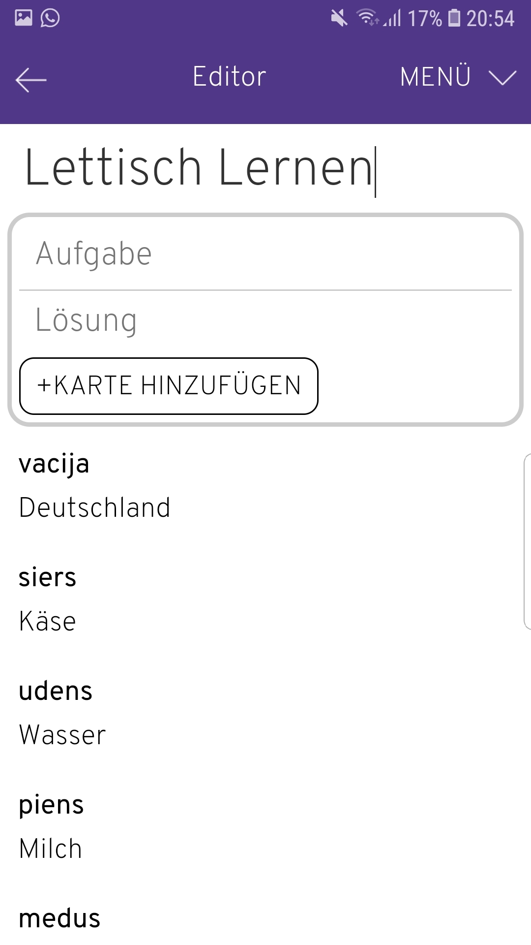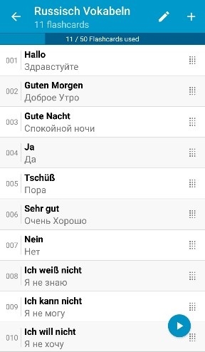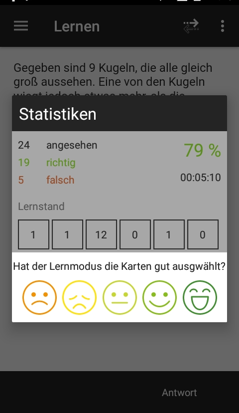 Karteikarten lassen sich individuell zu jedem Thema selbst erstellen. Die App „Karteikarten – Effektiv Lernen“ selbst ist mehr als ein Zufallsgenerator, der auswählt, welche Karte als nächstes abgefragt wird. Die Anwendung merkt sich den Lernstand und lässt verschiedene Abfragemodi zu. Gibts nur für Android.