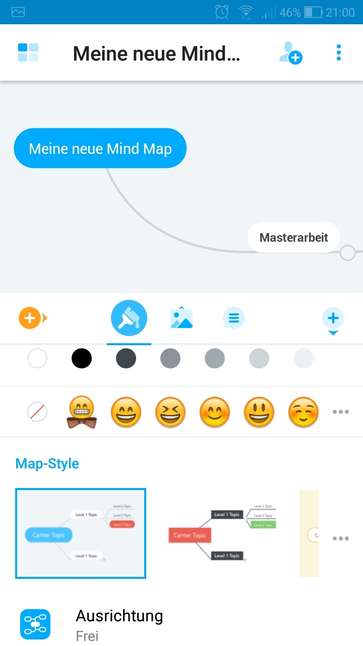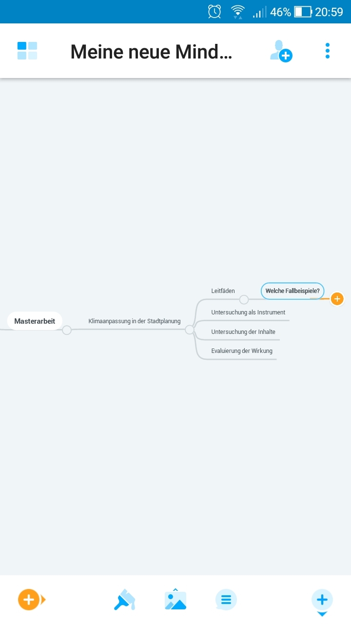 Mit der kostenfreien App „XMind“ kannst Du digitale Mindmaps erstellen und dort Deine Gedanken und Gliederungen sortieren oder einfach mal Brainstorming machen, ohne gleich Massen an Papier zu verschwenden, wenn Du versuchst dir eine Mindmap zu zeichnen. Gibts für Android und Apple.