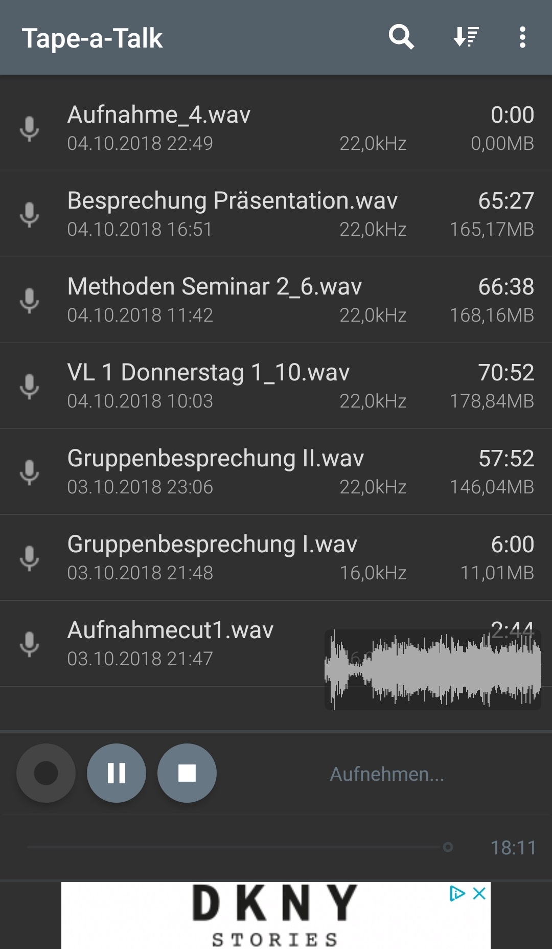 Mit der App „Tape-A-Talk“ kannst Du Vorlesungen ganz einfach aufnehmen, direkt schneiden, organisieren oder später anhören und so Deine Notizen vervollständigen. Gibts nur für Android.