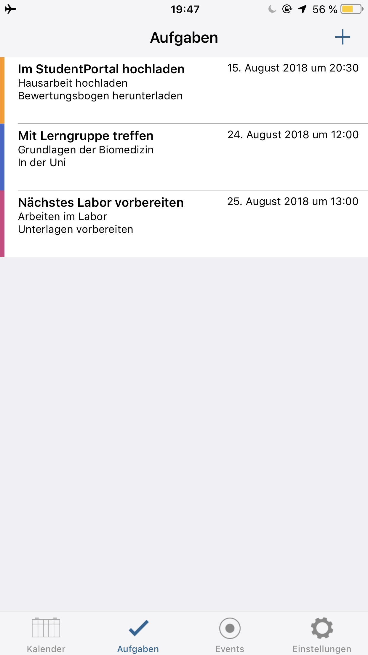 Die App „Uniplaner“ schafft eine Übersicht und bringt den Stundenplan aufs Smartphone. Dort kann zwischen A/B-Wochen unterschieden, eine ToDo-Liste mit Deadline gesetzt und Veranstaltungen erstellt werden. Der Stundenplan kann anschließend als PDF exportiert werden. Gibts nur für Apple.